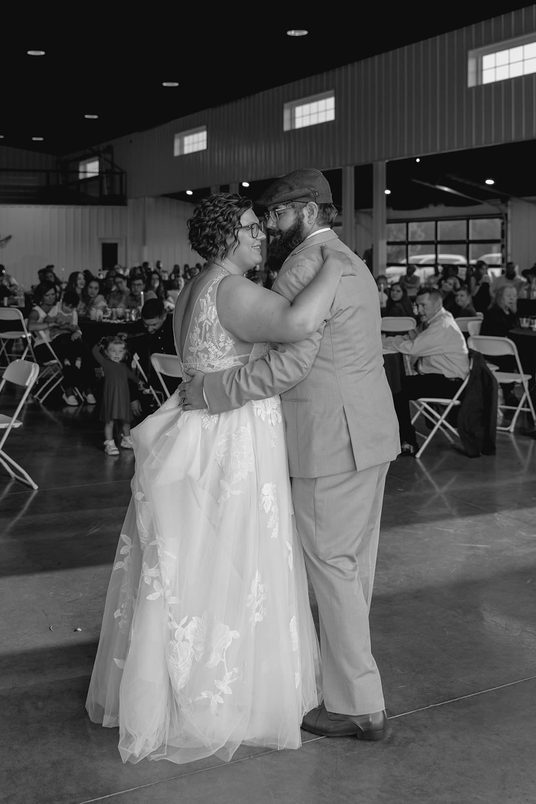 The celebration continued inside the reception hall, where twinkling string lights created a warm, inviting atmosphere. Janelle and Ethan shared a sweet first dance, their love taking center stage as friends and family looked on.