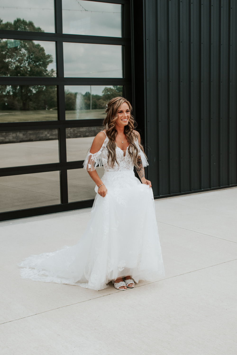 - On the backside of the barn we have a 40ft “runway” of short grass that is roughly 300ft long. Each side of the short grass is surrounded with 6ft tall switchgrass, trees and Chinese silver grass (BOHO lovers that’s for you!). This should create a secluded effect blocking out any other distractions for the ceremony.