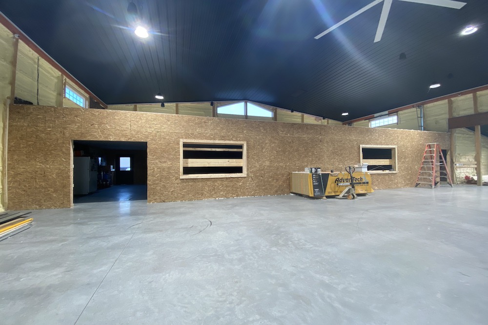 The front portion of under the loft will be the shop/groom area of the barn. Our grooms are a little easier to please than the brides 🙂 This area will just be a finished man-cave that will house our farm equipment on our off weekends but will double as a getting ready area for the men during our booked dates. It will feature a television, a couch and of course it’s own fridge!